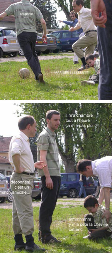 Une défaite 6 buts à 7 mais un foot qui fait plaisir. Face aux potes de Pierre, le Cogito (sans pression cette semaine, sans "match officiel") a longtemps cru à la victoire. Un Jérôme intraitable en défense, un Alex C buteur comme d'hab (et discret sur sa performance, c'est à noter) mais c'était sans compter sur un Ben C des grands jours qui aura du mal cette fois à vanter ses exploits à ses parents en rentrant le soir. (Composition d'équipe : Alex C, Alex E, Beber, Ben C, Fred, Jérôme).